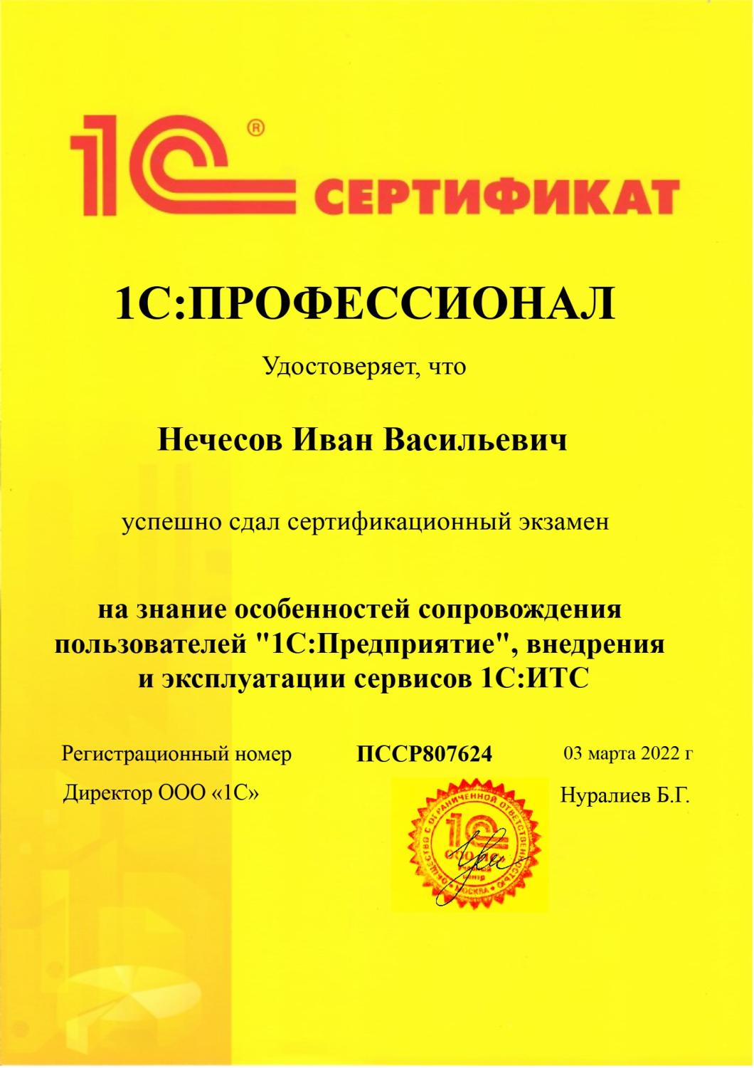 1С:Профессионал по внедрению и эксплуатации сервисов 1С-ИТС